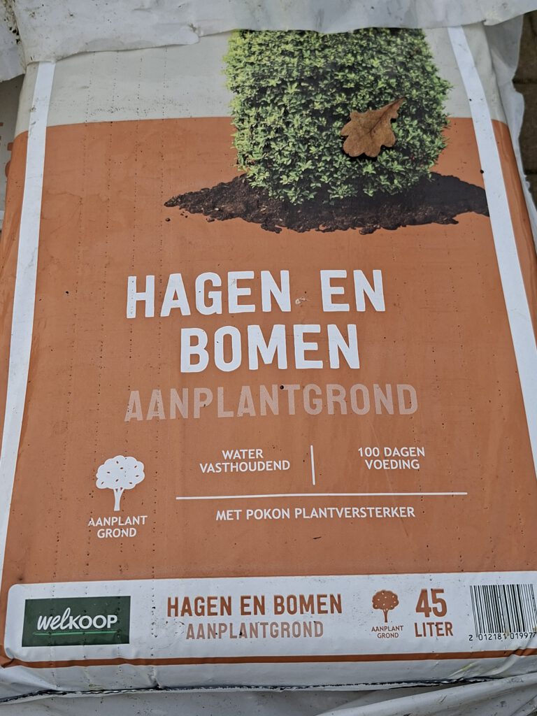 Op de plek van de Kleipeer, die vorig jaar ook ineens de geest gaf stond nog een kleine stobbe. Via een collega kreeg ik een (laagstam) Gieser Wildeman. We gaan het dus toch nog een keer proberen. Met een goede bodemverbetering erbij hopen we dat we deze boom wel groot zien worden.