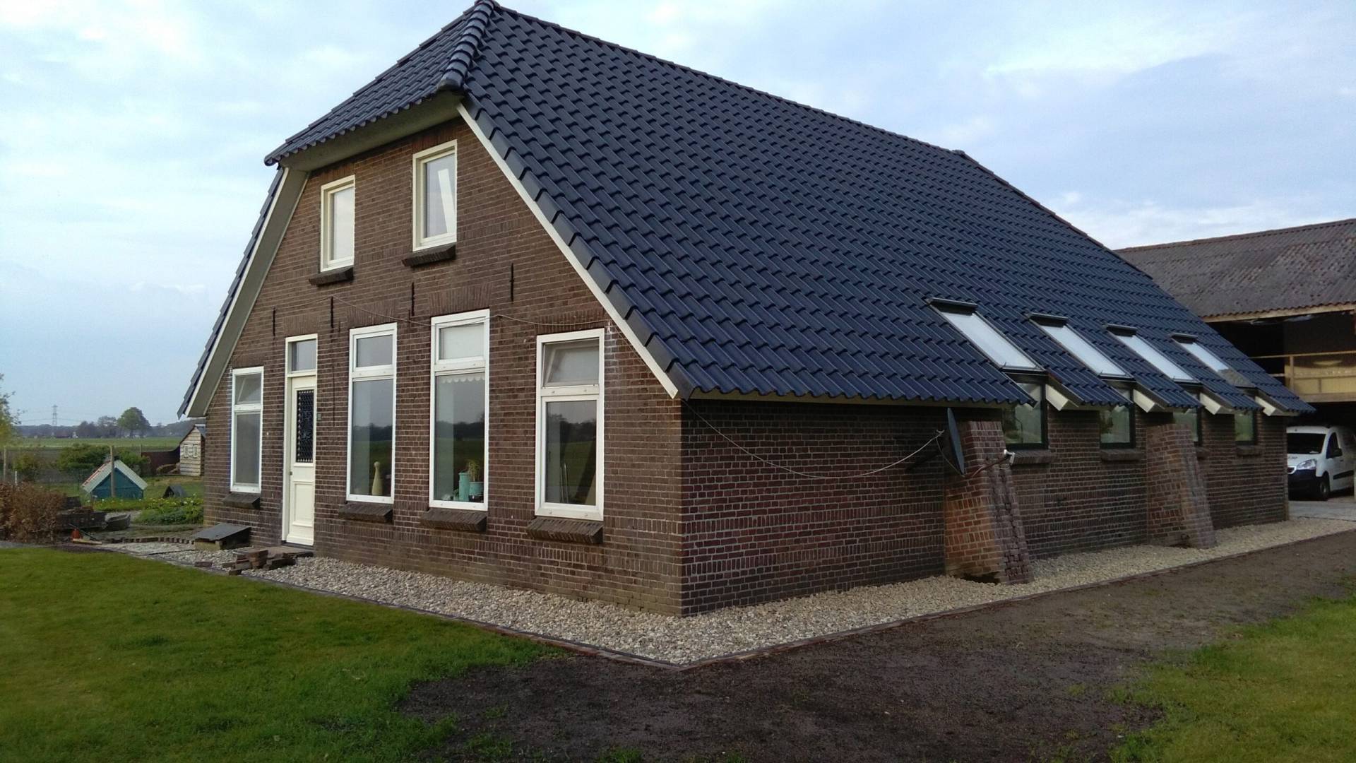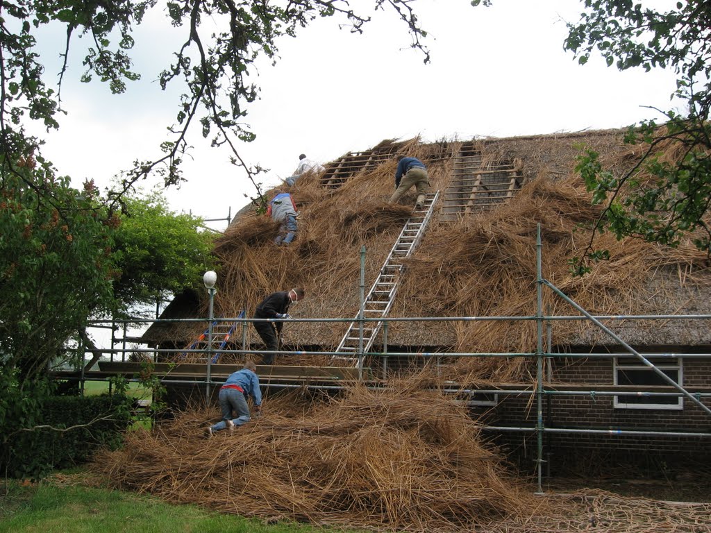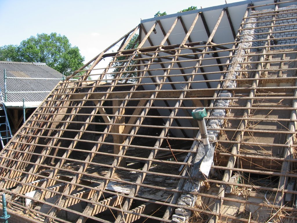 In 2011 zijn we begonnen met het vervangen van het dak. Het riet moest helaas plaatsmaken voor (veiliger en duurzamer) dakpannen.