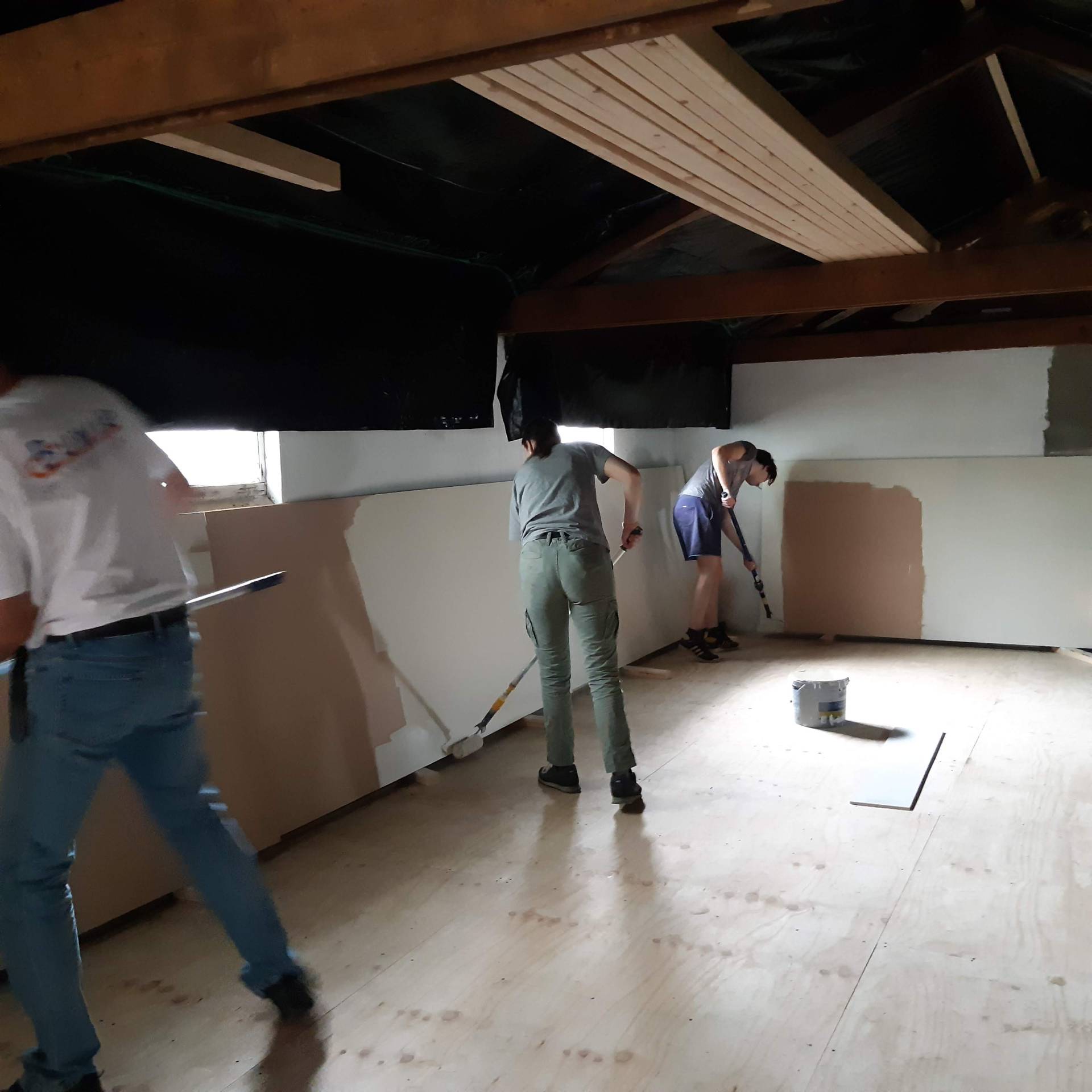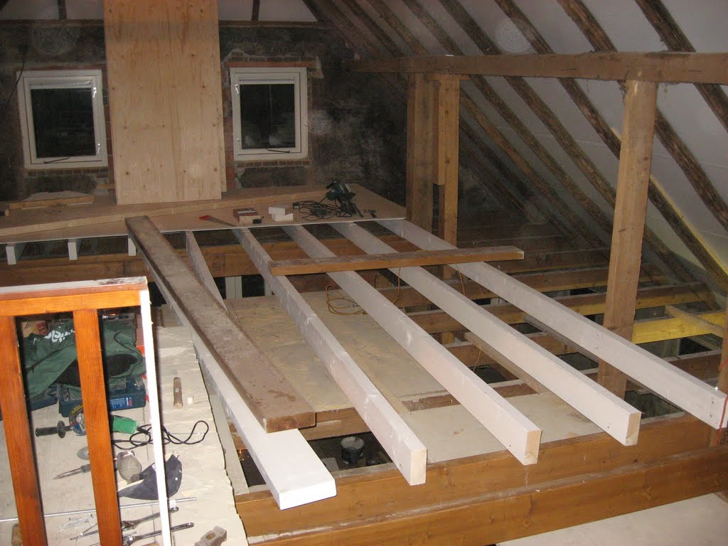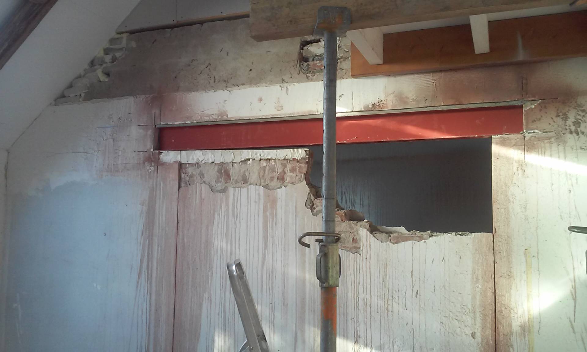 Er is een nieuwe achtergevel opgebouwd en boven de deel hebben we een verdiepingsvloer gemaakt. Hiervoor moesten de gebinten en de balken vervangen worden.