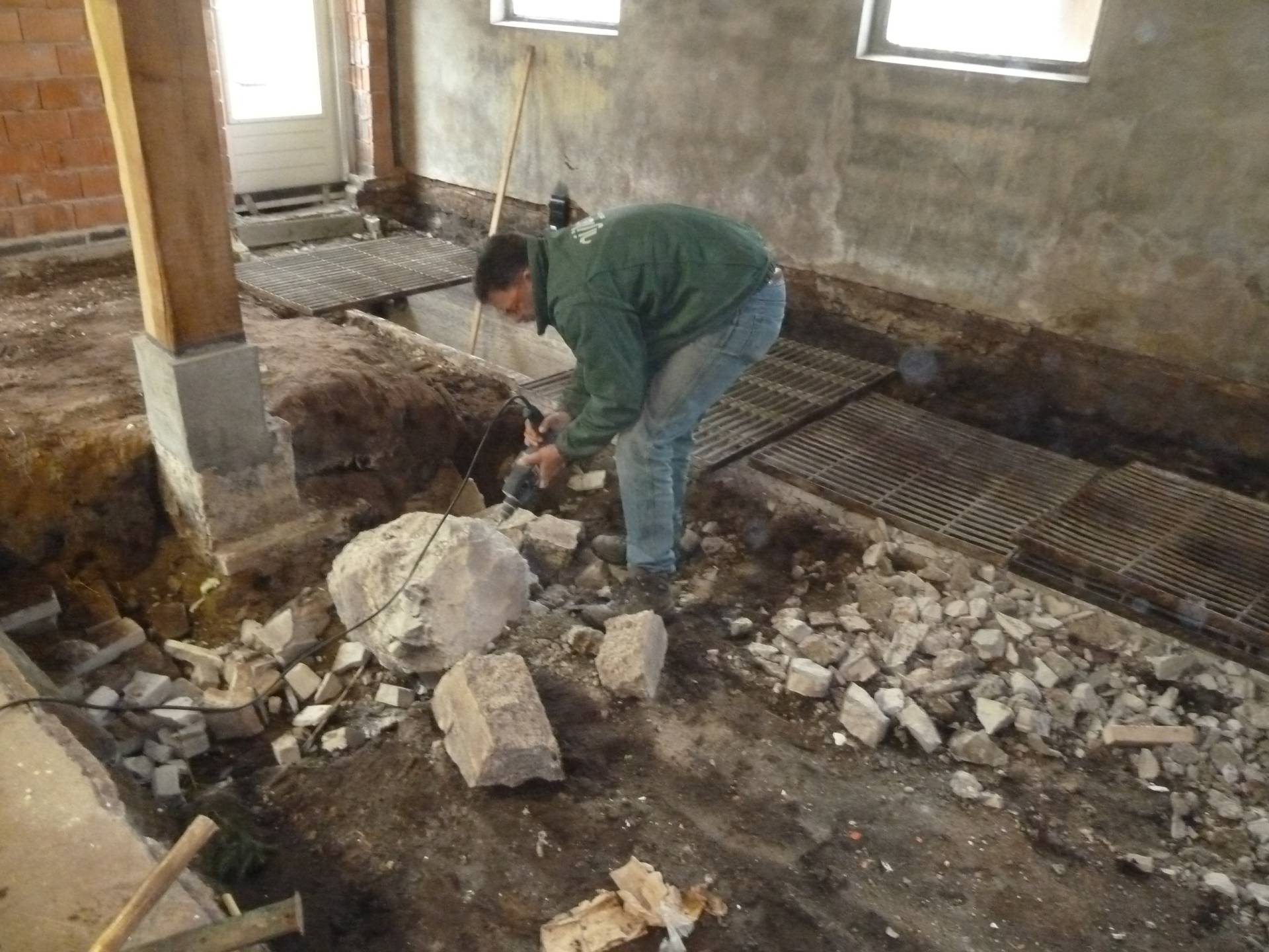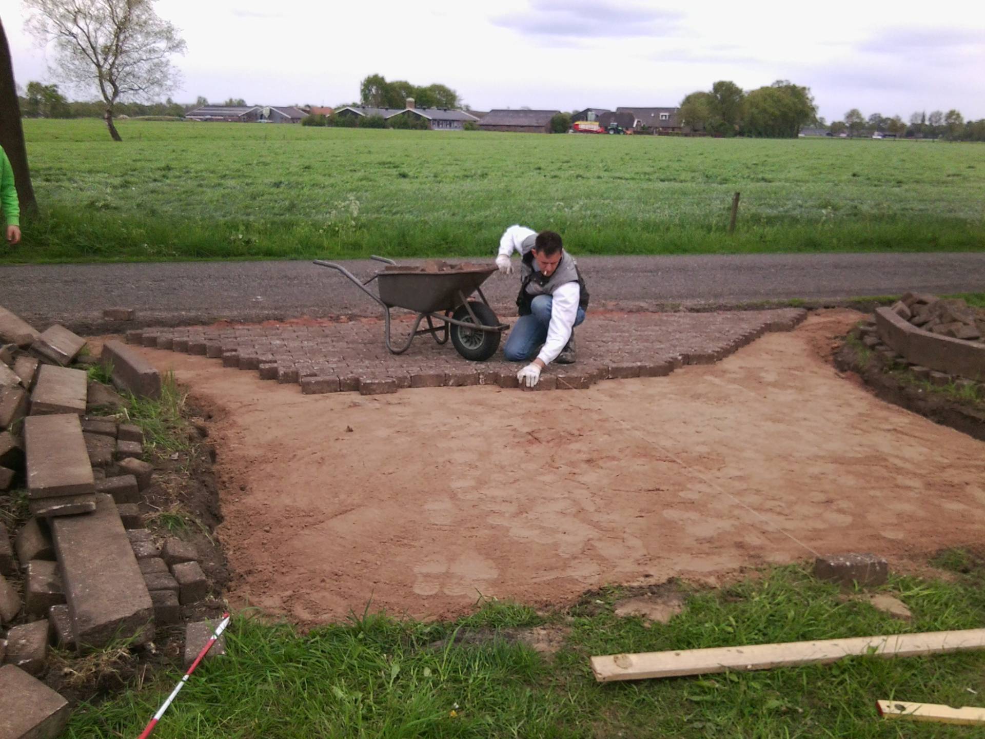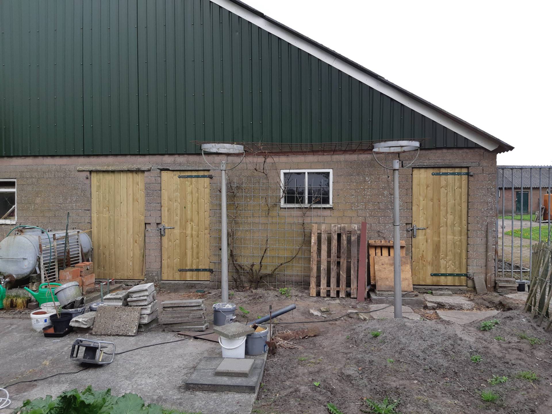 2012 was het jaar van afwachten. Ons oude huis was nog niet verkocht. Met deze onzekerheid wilden we niet beginnen met de verbouwing van de boerderij binnen. De stalinrichting van de koeienstal moest eraan geloven en in de stallen hebben we ruimte gemaakt voor opslag. Buiten zijn we verder gegaan met het straten van de inrit aan de Veldhoekerweg.