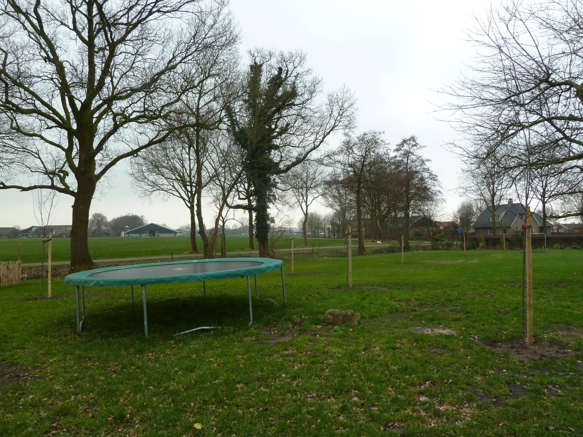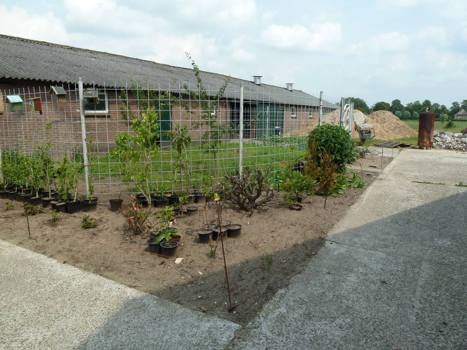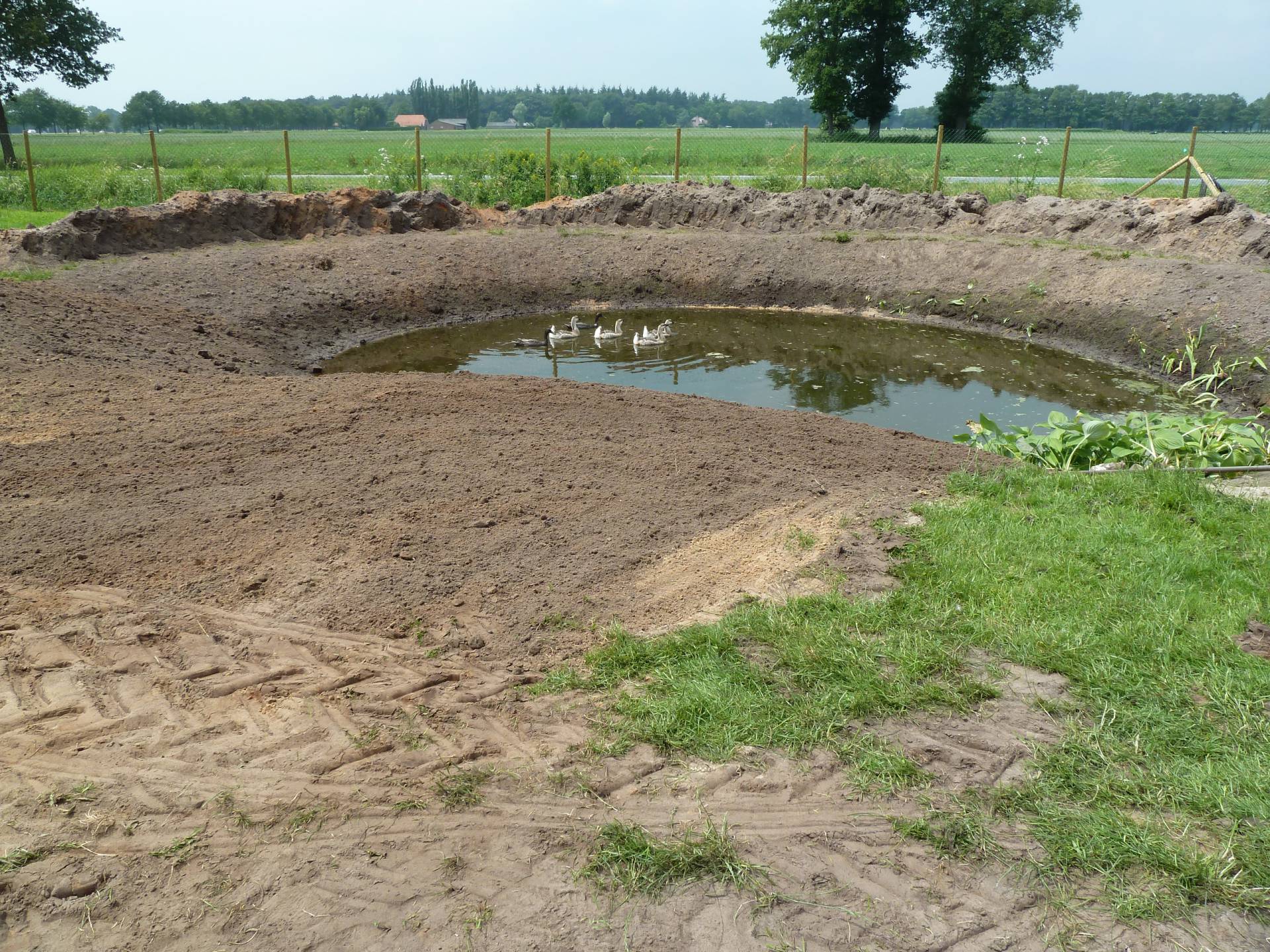 In 2013 zijn er inmiddels ook een paar bewoners buiten bij gekomen (zie Dieren op de boerderij). Voor de ganzen en eenden hebben we een weiland afgerasterd en een vijver gegraven. De hond kreeg een eigen ren. Voor de kippen hebben we een kippenhok gebouwd en de eerste contouren van de moestuin werden ook zichtbaar.