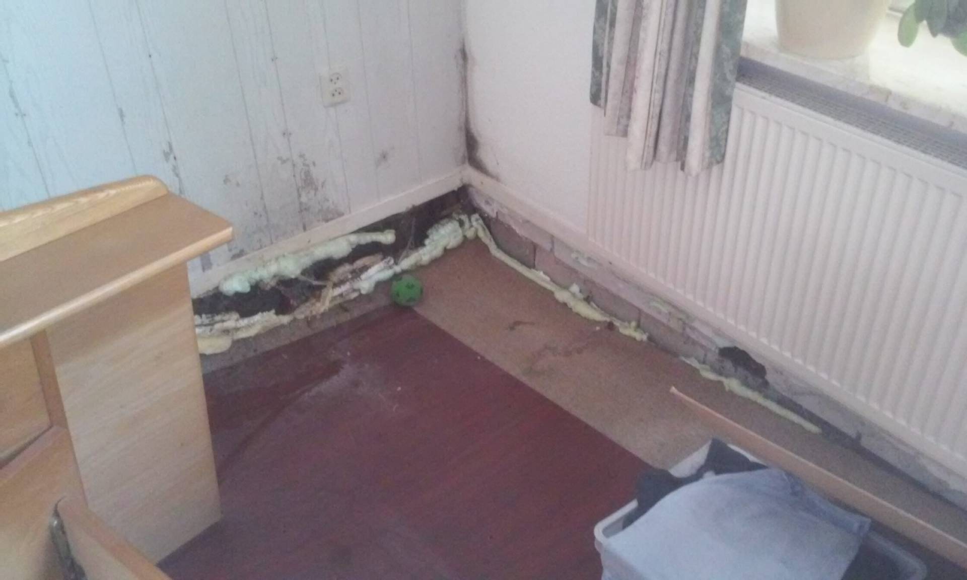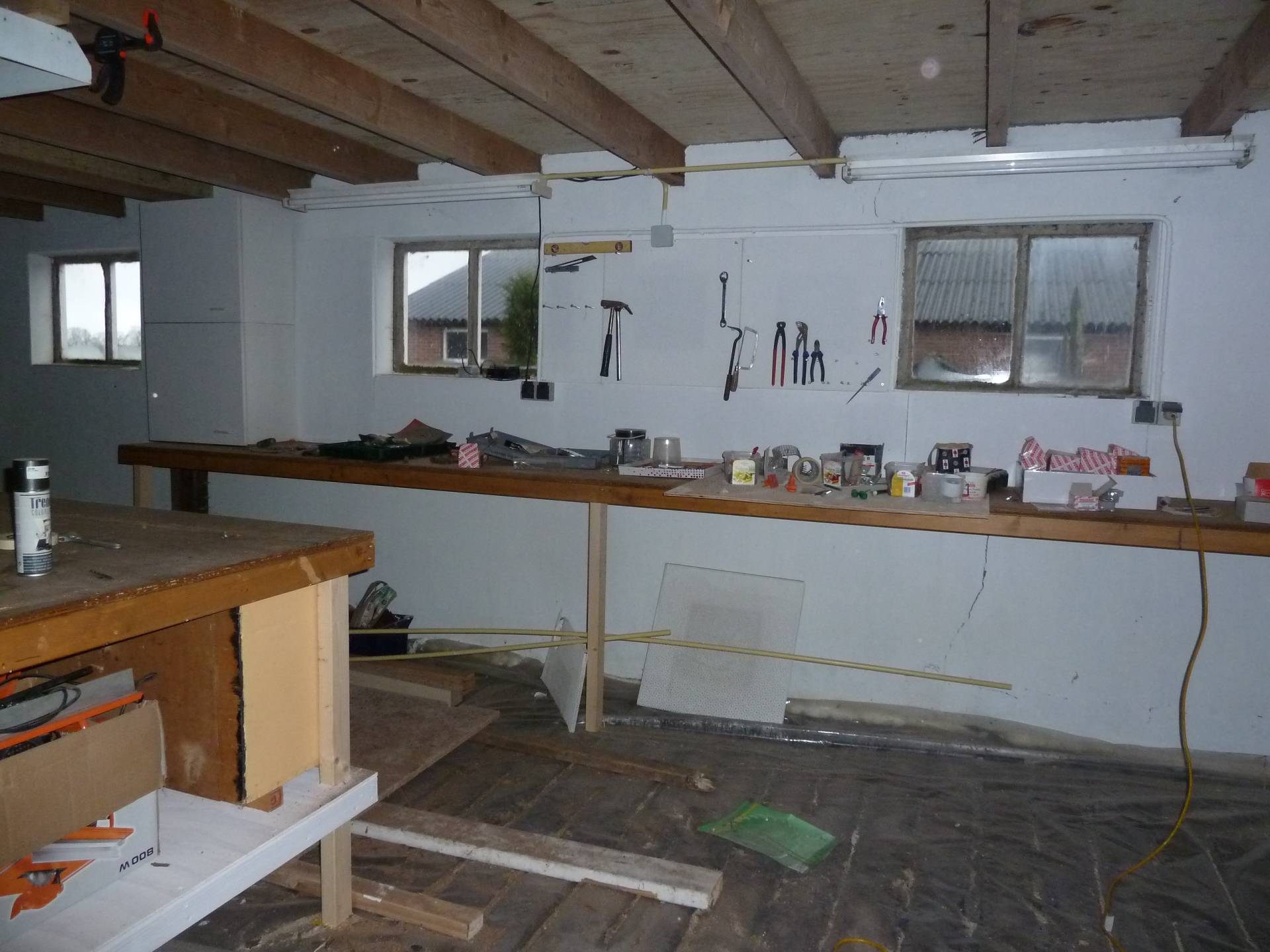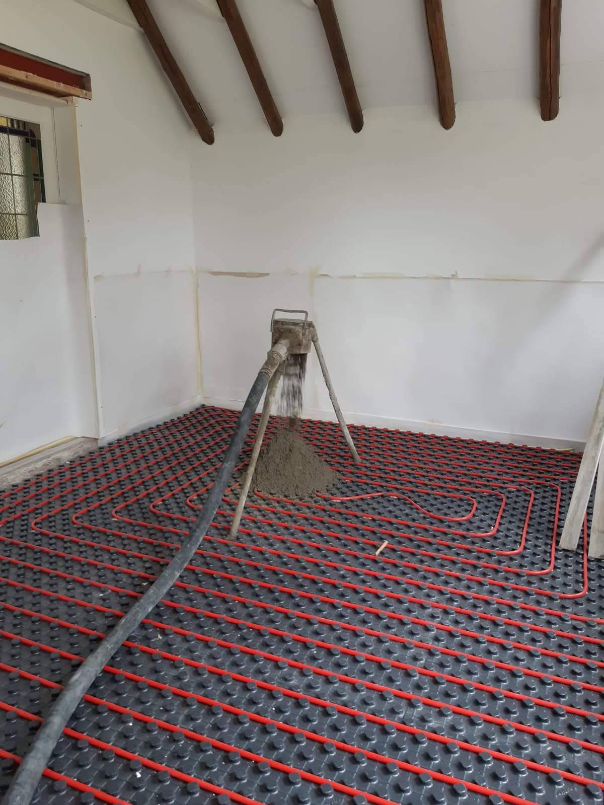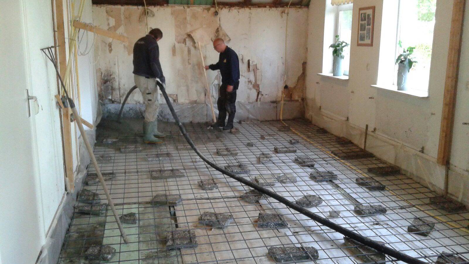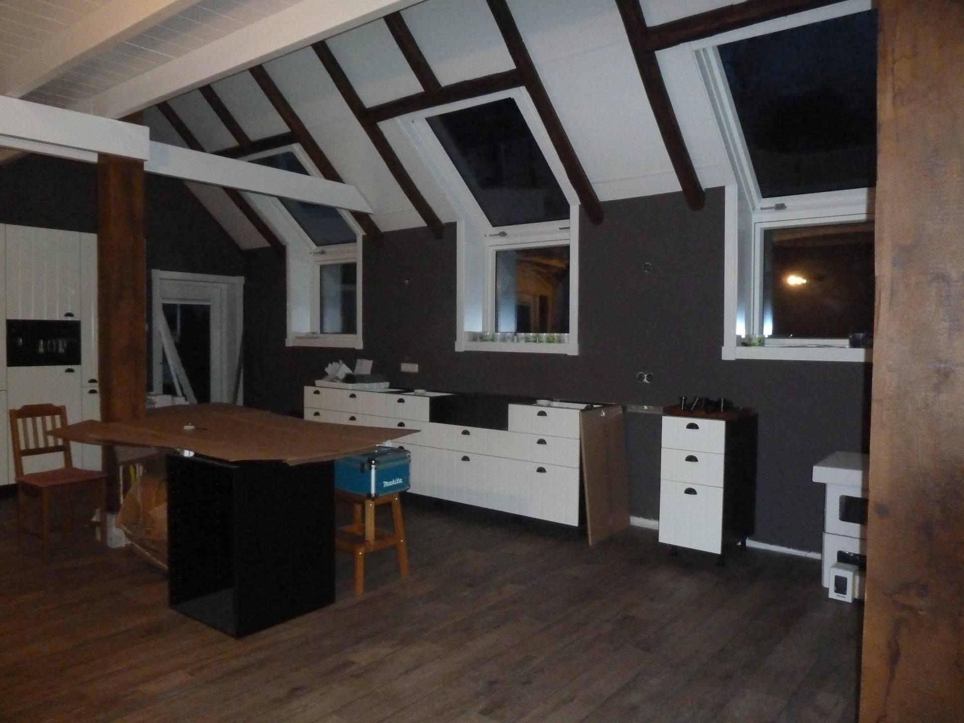 In 2015 krijgt de woonkeuken vorm. De vloer en muren worden goed geïsoleerd. Overal wordt een binnenblad met spouw en isolatie aangebracht. De vloerverwarming gaat erin en er wordt een betondekvloer gestort. In de slaapkamer zijn de stalraampjes afgewerkt. Alles net op tijd voor de interne verhuizing naar de nieuwe slaapkamer, want in de oude zakken we door de vloer 😨.