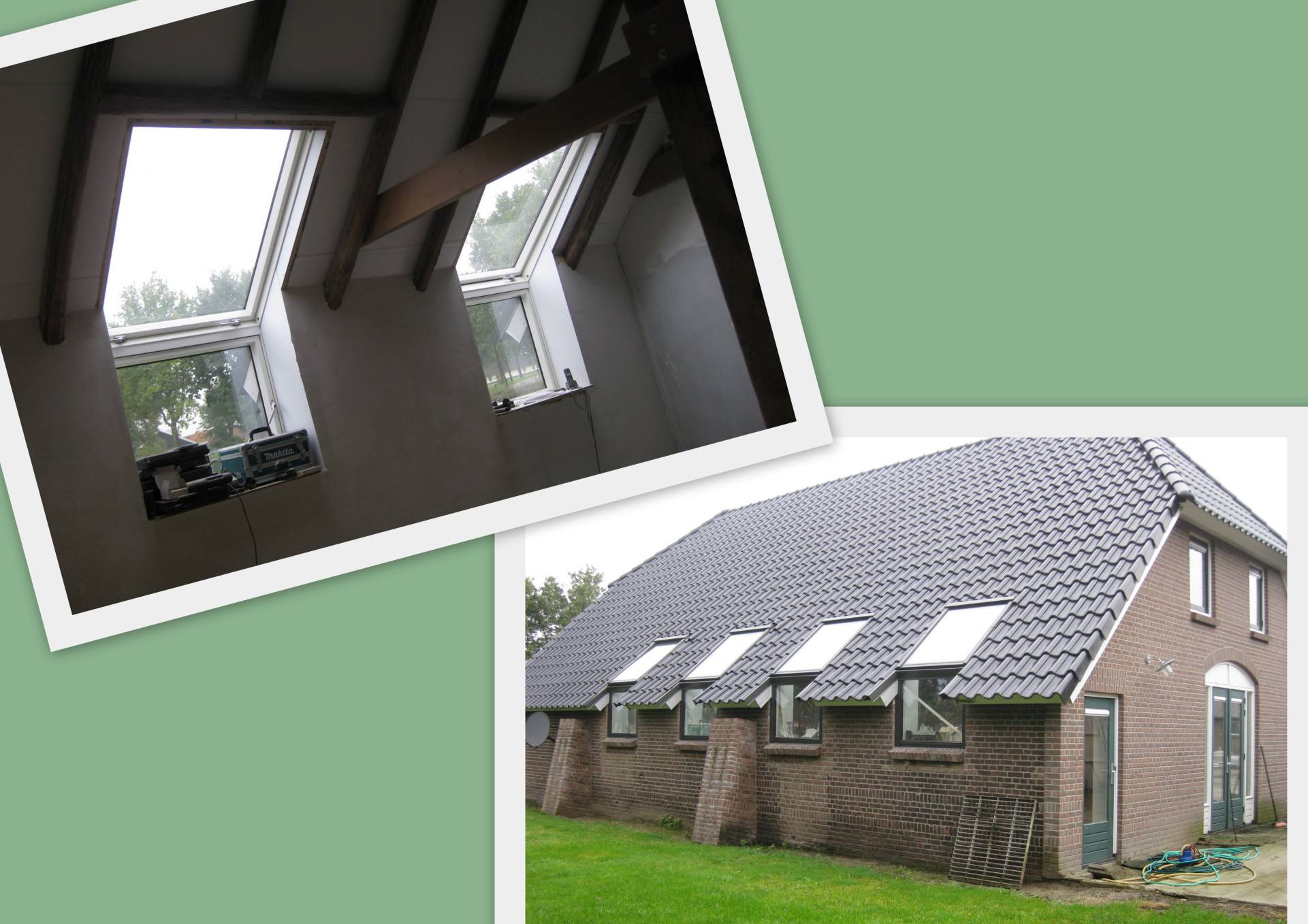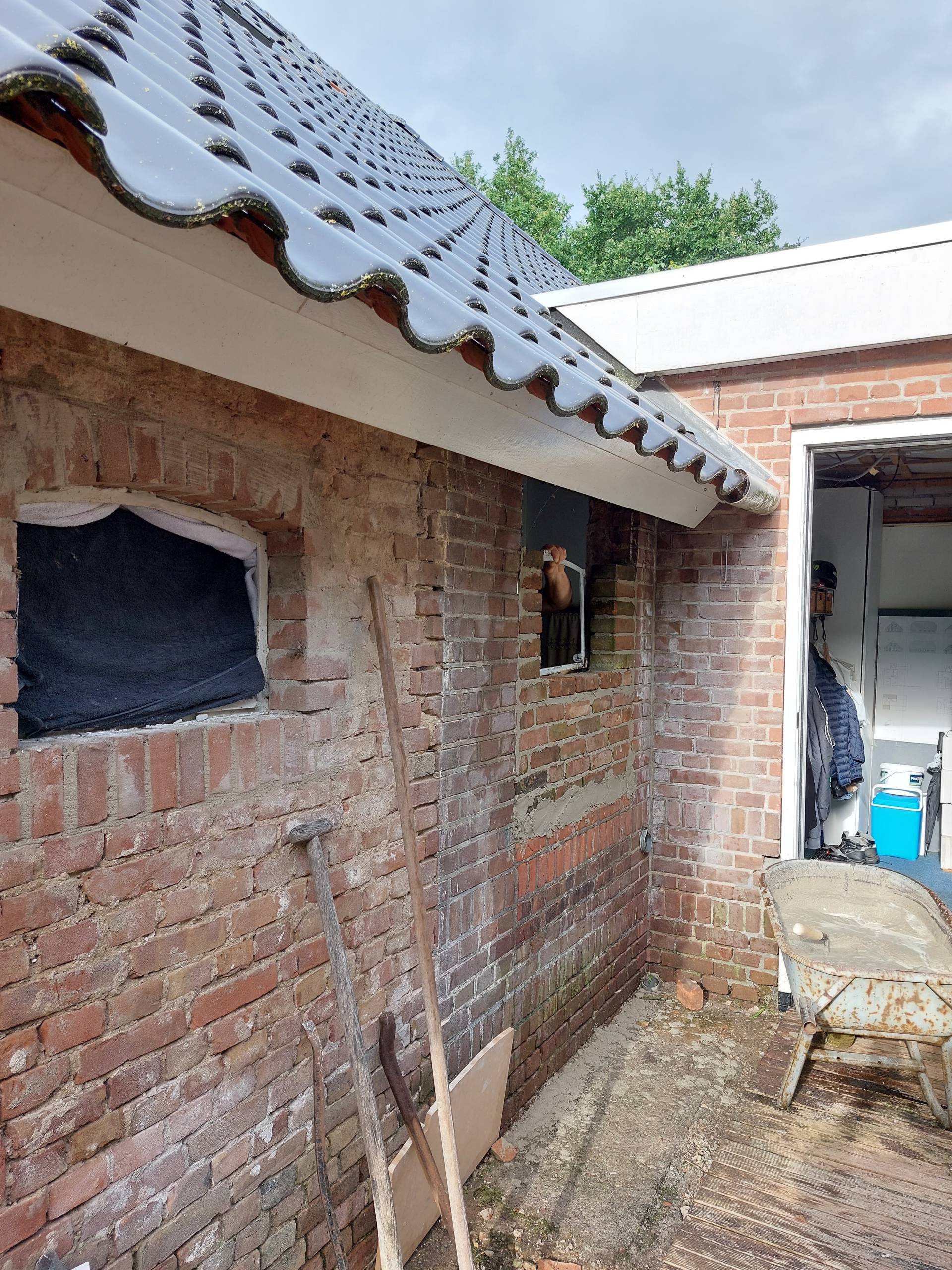 Door lekkage van het oude rieten dak van het bakhuis (in de meterkast!) hebben we in 2017 eerst het dak (en meteen ook de kozijnen en deuren) van het bakhuis vervangen.
