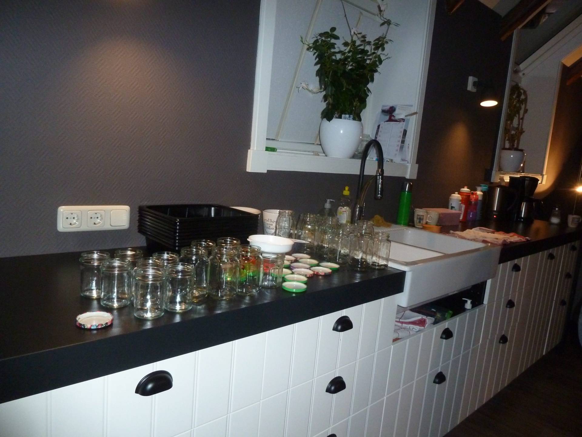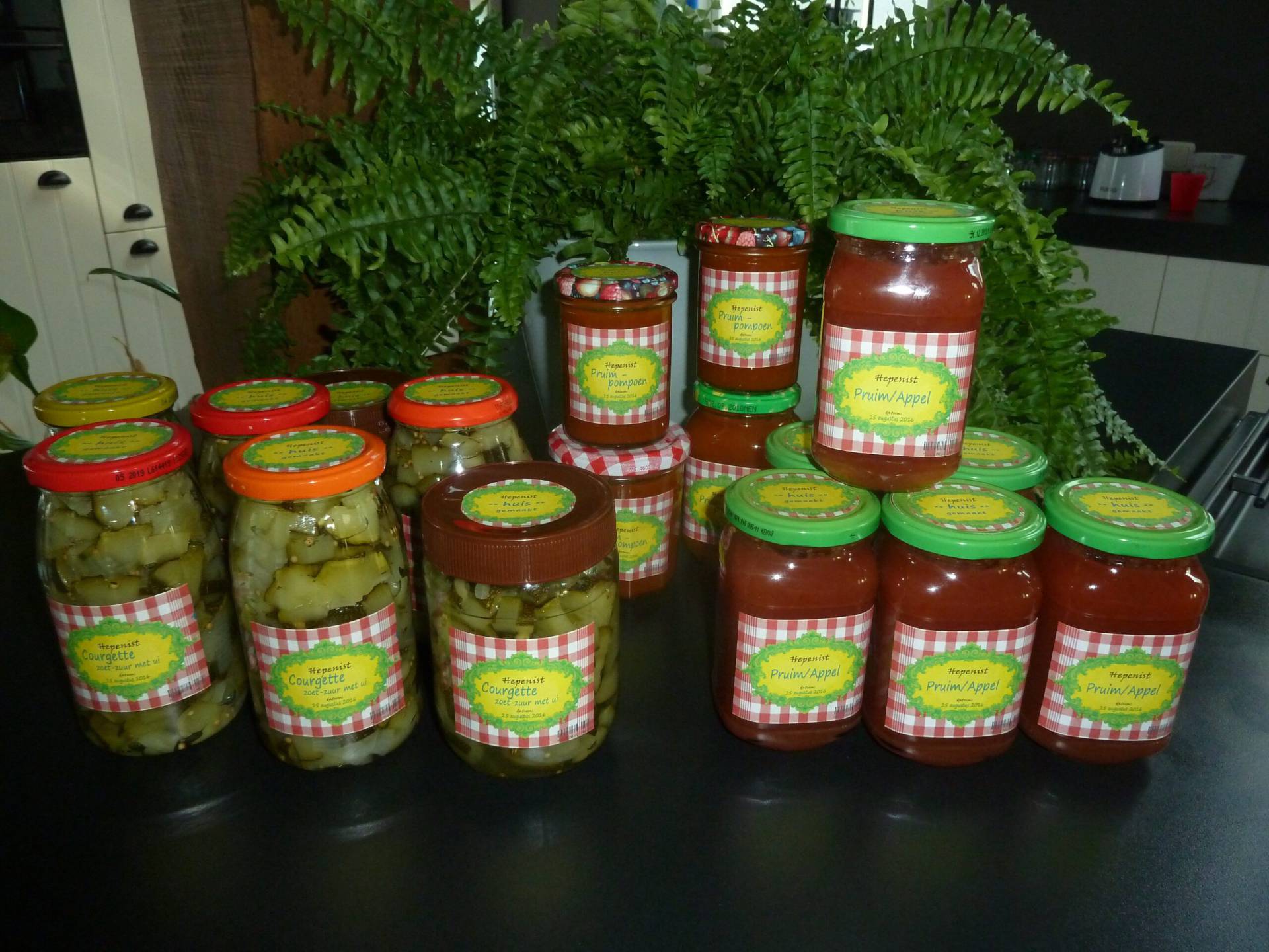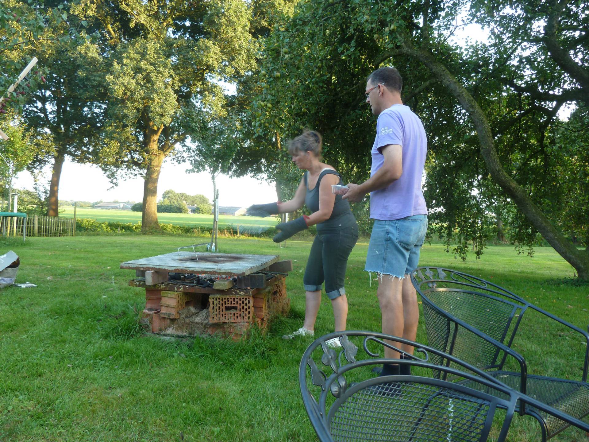 De moestuin levert ondertussen de nodige opbrengst en dat verwerken we in jam en zoet-zuur. In de boomgaard hebben we van oud bouwmateriaal een tijdelijke barbecue gebouwd.