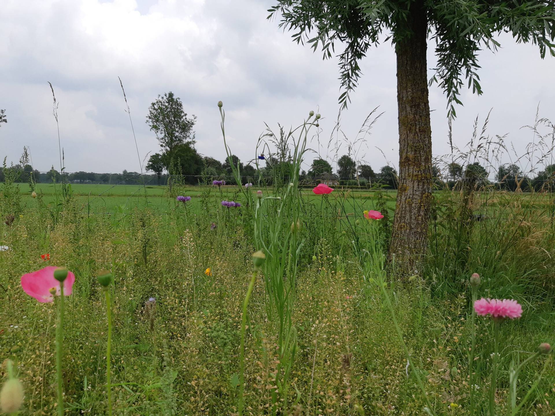 In de zomer maken we een paar nieuwe deuren voor de schuren. We hebben de bloemenweide in laten zaaien en die staat nu mooi in bloei.