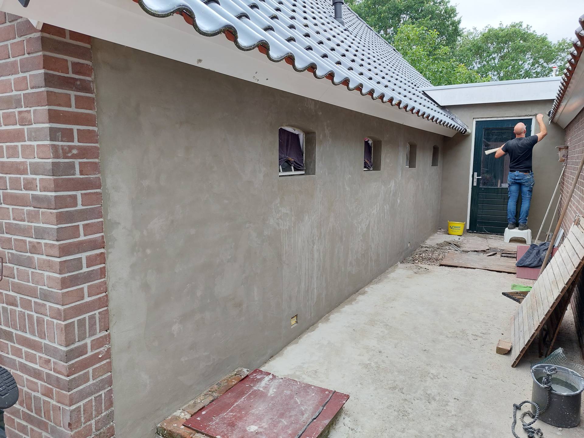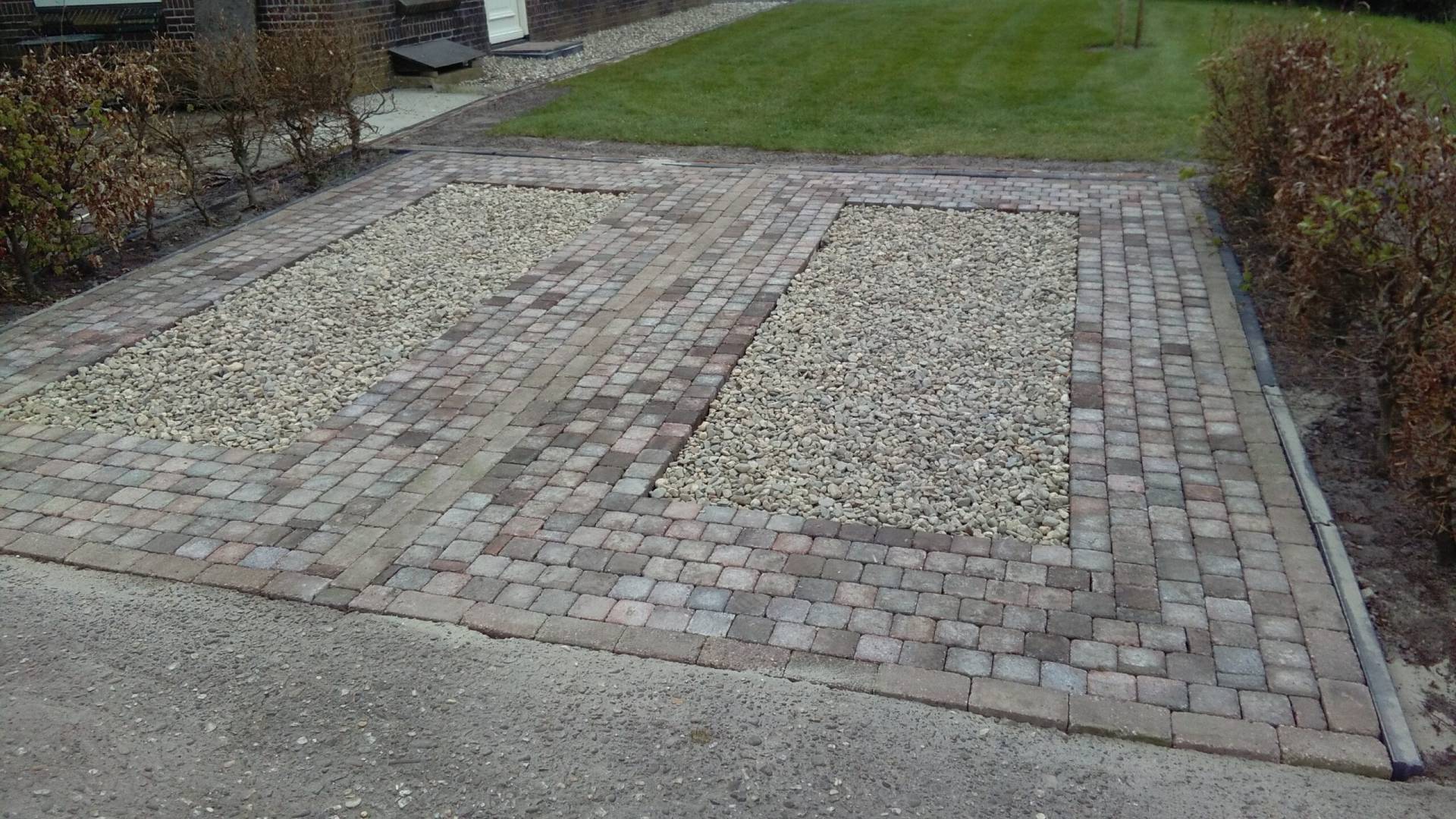 In de zomer maken we buiten een grindpad rondom en parkeerplaatsen aan de voorkant.